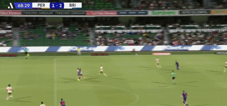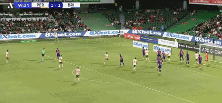 第50分钟,亨利-霍尔助攻,克莱因头球破门将比分反超,布里斯班狮吼2-1